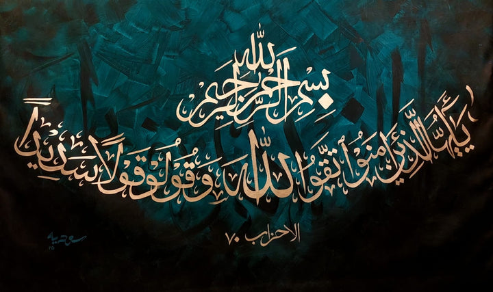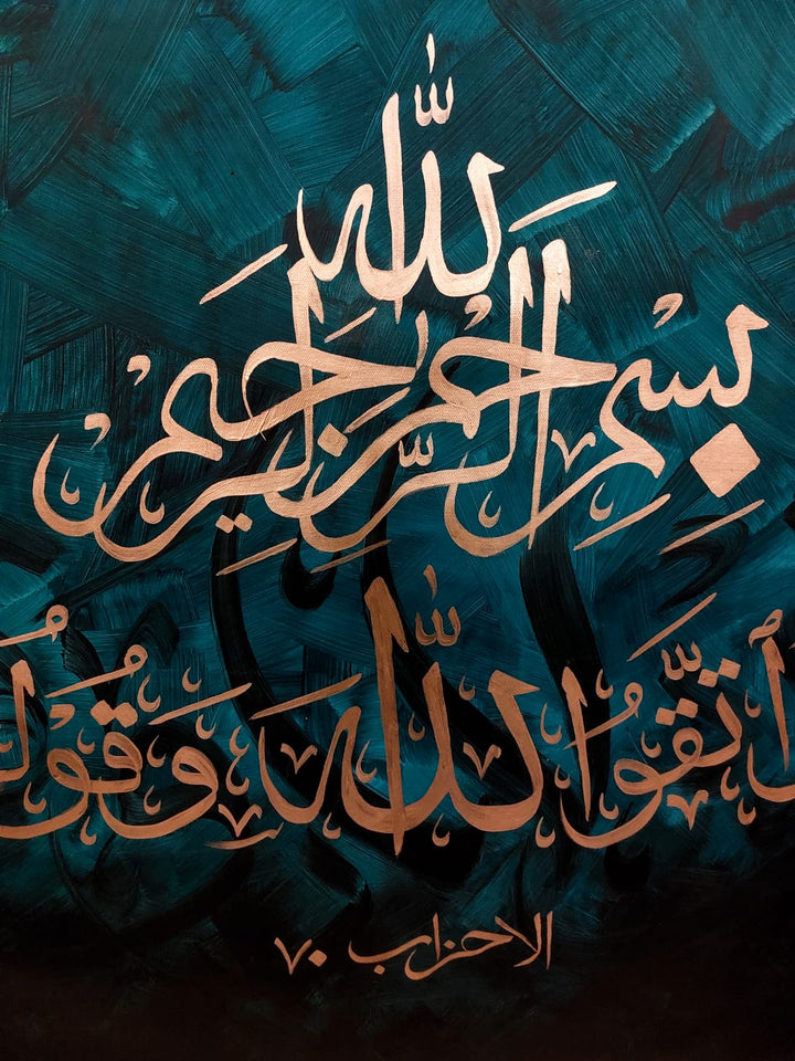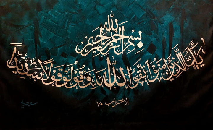 Al Ahzab showcases modern Islamic calligraphy that beautifully honors the Almighty and His blessings. This artwork blends traditional reverence with...