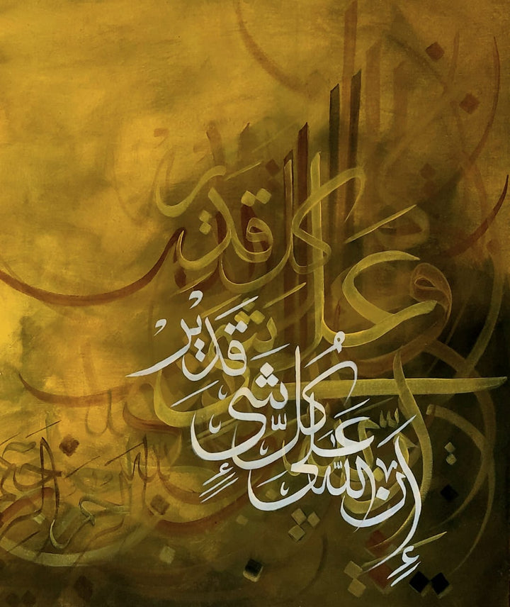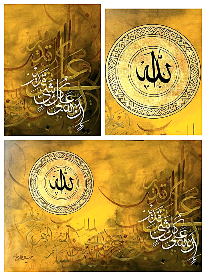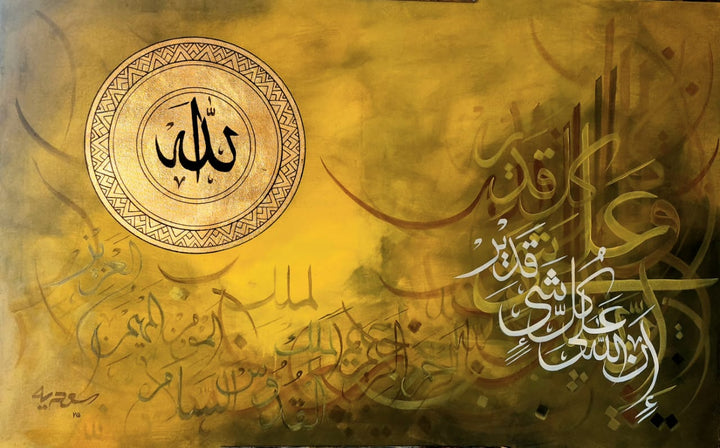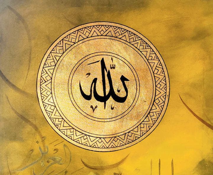 This exquisite calligraphy artwork beautifully honors Allah, capturing the divine essence with masterful strokes. Its unique design reflects deep reverence and artistic excellence, making it a distinguished piece for any space seeking spiritual inspiration and elegance.